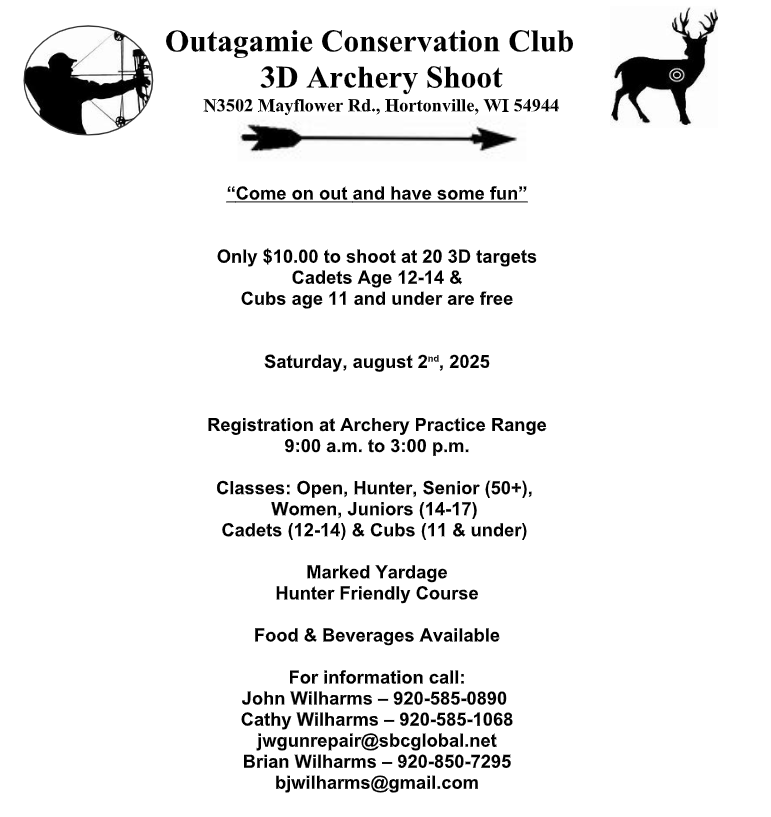 Outagamie Conservation Club, N3502 Mayflower Rd., Hortonville